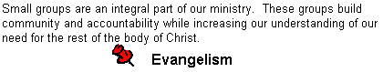 The strength of a church comes from its sense of community. The focus and purpose for this community is to reach those who do not know Christ. The gospel is shared through service, personal evangelism and preaching that draws the unbeliever into the incredible grace of God. We are constantly reminded that it is the love of God that brings repentance and repentance is what is most needed in our relationship with Him. Our obedience does not bring us into right relationship with God, our relationship with God enables our obedience. Sharing the gospel becomes a joyous outpouring of the Grace He has already shown us. |